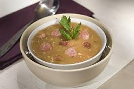 retire as salsichas e bata o restante no liquidificador ou com o mixer e devolva as fatias de salsicha na panela. Servir com azeite e torradinhas.