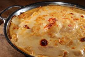 Num refratário cloque um pouco de azeite e comece fazendo camadas de batatas, creme de leite , peito de perú e queijo. No final coloque bastante queijo para gratinar e leve ao forno 180g por 45 minutos até ficar bem gratinado.